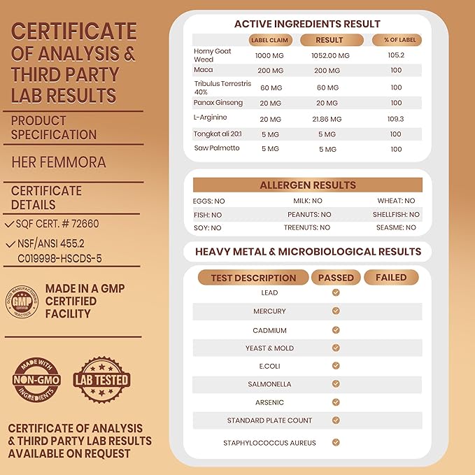 - πΈ Boost Female Desire & Intimacy β Her Femmora is specially designed to help women rekindle passion and enhance mood naturally with a potent blend of Horny Goat Weed, Maca Root, Tribulus & more.